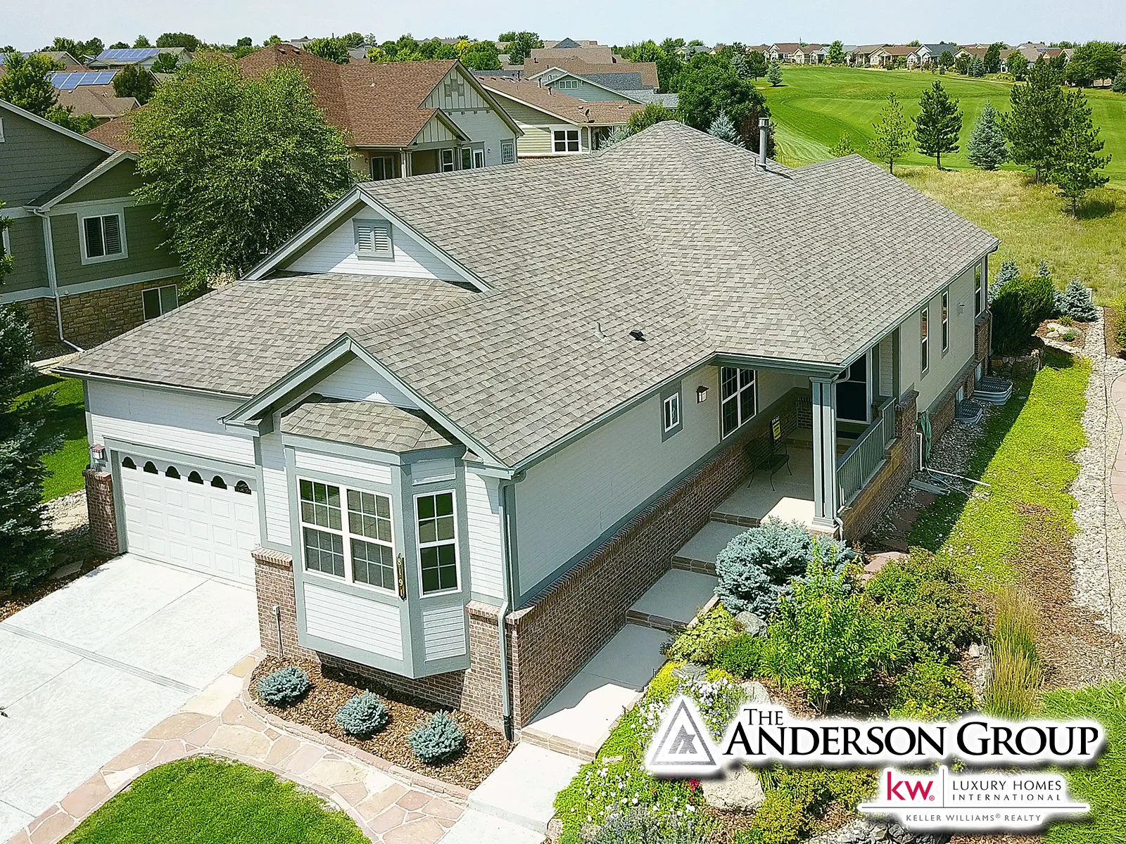 Wow! This beautiful home BACKS UP TO THE GREEN for Hole #2 of the Golf Course, with a serine Waterfall and Fish Pond! Faces west for evening Colorado orange and blue Sunsets! Key features include: Bay Windows in Master & Guest Rooms, Large Panty, Laundry/Mud Room, wonderful Open Floor Plan in the main living area, which includes Surround Sound Speakers installed into the Ceiling and above TV Space. This home also features a front bedroom with French doors, which can easily be converted into an Office or Den Area. Amazing 2.5 Car Garage with 8 ft. tall built-in cabinets with additional space for a golf cart and/or other outdoor equipment! Complete with a beautiful Master Suite and En Suite 5-piece Master Bath with 2 Closets (One Walk-in & One Large) along with a Large Bay Window. Included is a spacious laundry/mud room with built-in cabinets and large basement for lots of storage. Golf Cart is negotiable!!